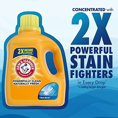 Value matters when it comes to laundry wash detergent. ARM & HAMMER Clean Burst is concentrated with 2X powerful stain fighters in every drop vs. leading bargain detergent. With the cleaning and freshening power of ARM & HAMMER Baking Soda, this liquid concentrated laundry detergent delivers the clean you need. This washing detergent leaves clothes powerfully clean and naturally fresh, and is designed to power out dirt and odors. Its low-sudsing formula rinses clean and is designed to work in both standard machines and today’s energy conscious High Efficiency (HE) models. Its liquid concentrated formula delivers a powerful clean, plus it keeps your laundry smelling Clean Burst fresh. Many of our laundry, cat litter, toothpastes and personal care products are made with ARM & HAMMER Baking Soda, delivering the quality you can count on, from the brand you trust. Versatile and affordable, for generations of families, ARM & HAMMER Baking Soda has been the standard of purity, and a trusted household staple in millions of cabinets and pantries.
