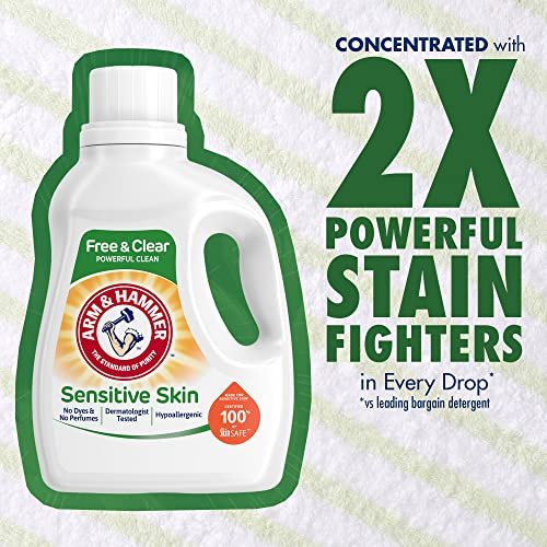 POWERFUL CLEAN THAT’S GENTLE ON SKIN. As a sensitive skin liquid laundry detergent with no dyes and no perfumes, ARM & HAMMER Sensitive Free & Clear is still tough on odors, dirt, and stains. This free & gentle laundry liquid gives you a fresh clean you can count on without dyes and fragrances that impact people with sensitive skin who need a hypoallergenic washing detergent