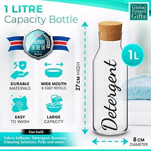 The Global Printed Gifts glass storage containers are definitely a must for any modern household, being ideal for neatly organising your laundry products in a functional and practical manner! Handmade with care and extra attention to details, with convenient cork stoppers which prevent leaks or accidental spills, these glass jars are sleek and elegant, adding a beautiful modern touch to your living space. The optimal 1000ml capacity keeps your laundry supplies safe, while the wide mouth opening makes it easy to pour and refill when needed!