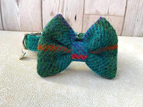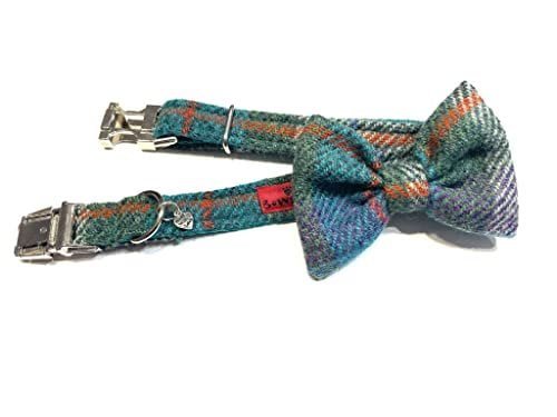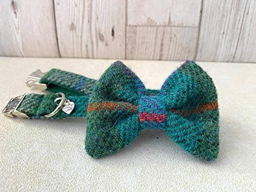 Harris Tweed Dog Collar with detachable Bow Tie – Thistle Green