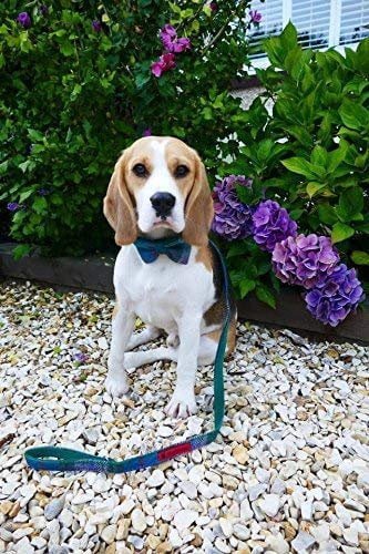 Dog collar with detachable bow tie accessory. Handmade in Edinburgh with thought, love and attention to detail. Made from Harris Tweed fabric and backed with strong yet soft webbing to give you the unique style you love with the durability your dog needs. Triple stitched at all stress points to keep the durable, high quality hardware in place, with a strong metal release buckle that is curved for maximum comfort and a gauge welded D-ring The collar is adjustable & the bow is removable/detachable. To keep your Bowzos accessories spic and span, all collars are washable. I suggest washing them by hand and laying flat to dry. To extend the life of your Bowzos product we also recommend alternating your favorite styles- after all, they are your dog’s only true accessories! Available in 3 sizes – please measure your dog to ensure best fit: Small – fits necks 10″ – 14″, width 3/4″ Medium – fits necks 12″ – 19″, width 3/4″ Large – fits necks 16″ – 25″, width 1″