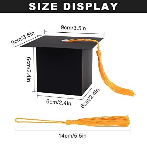 Graduation Favour Boxes:You will get 36Pcs doctoral cap shape candy box with yellow tassels.Quantities are sufficient to meet various party needs