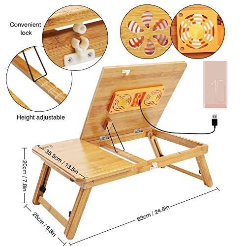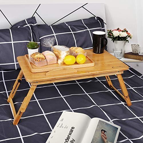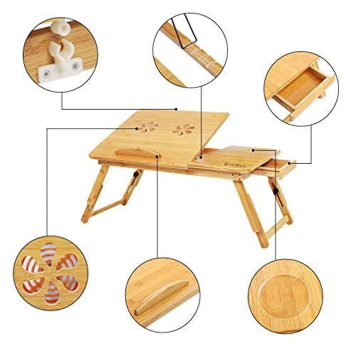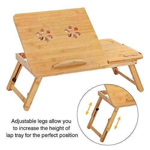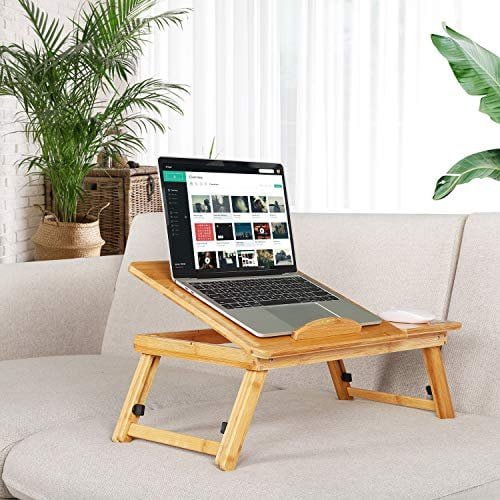 【100% Natural Bamboo Material】The Laptop Desk ist made of natural and sturdy bamboo board, the unique making process and out-looking design with superb skills guarantee our high quality. The specially made table top can withstand heavy loads without abrasion or deformation.