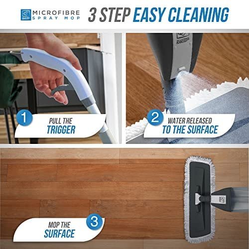 Versatile Cleaning – Our spray mops for floors are the ultimate floor cleaner you need. Ideal for use on all types of flooring, including hardwood, laminate, and tile, and comes with 3 reusable microfibre pads that can be washed and used over and over again. The floor mop with spray function comes with 1 scraper for scraping off dirt and hair from the microfibre pad.