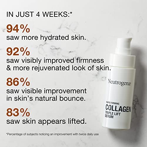 1-fluid ounce of Neutrogena Rapid Firming Collagen Triple Lift Face Serum hydrates to smooth skin while visibly lifting and firming for a more taut, contoured look in just 4 weeks. Lightweight serum is Free from dyes and Mineral Oils