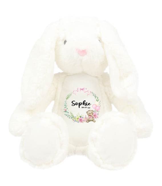 Personalised Bunny Rabbit, New Baby Gift, Personalised Plush Soft Toy, Your Name Teddy, Cuddly Toy, Girls and Boys Teddy Baby Shower Gift