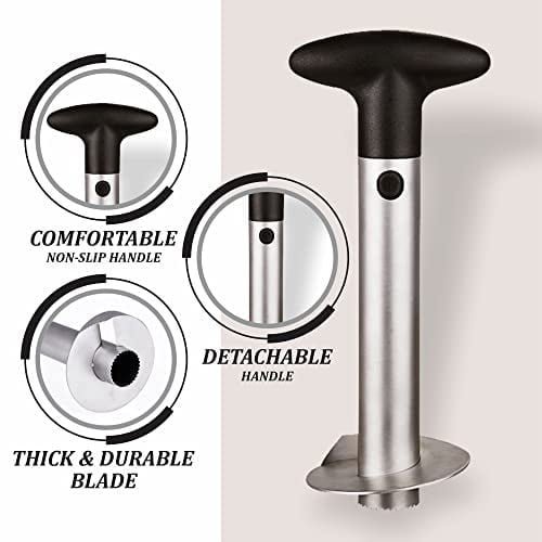 - Sharp Stainless Steel Blade Effortlessly Cuts Through The Fruit Without Making A Mess Pineapple Corer Not Only Makes Cutting Pineapple Slices Simple