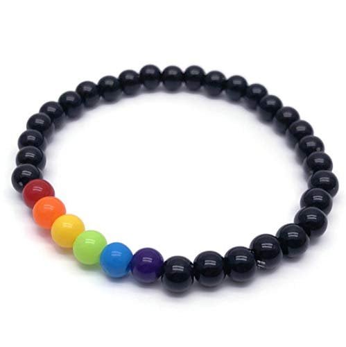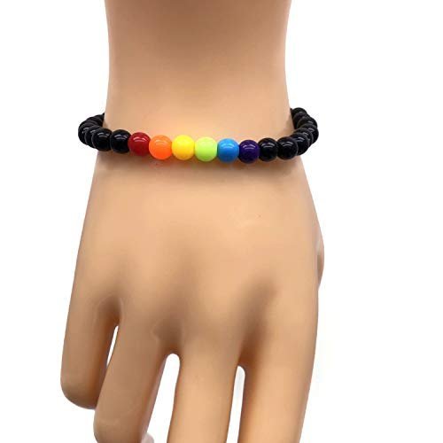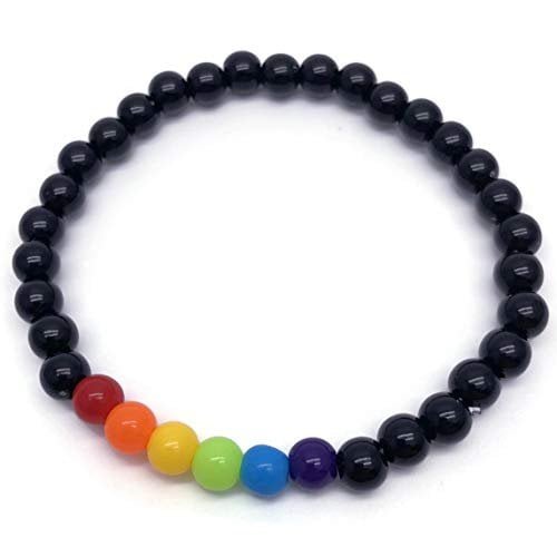 Rainbow and Black Bracelet – 6mm Acrylic Beads – LGBT Pride LGBTQ Gay Lesbian Bi Trans Queer – 7 inches