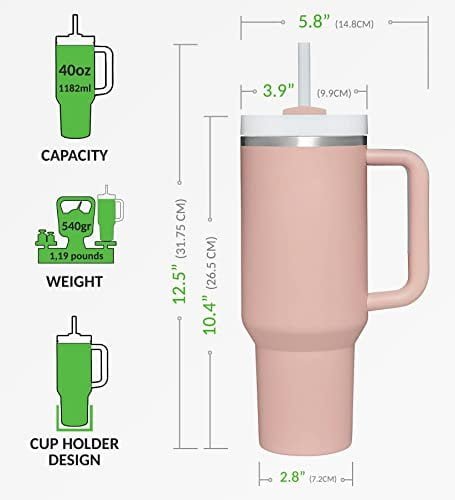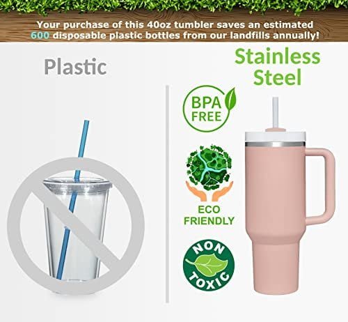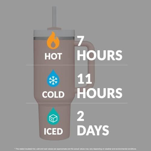 STAINLESS STEEL INSULATED TUMBLER: Crafted from food-grade 304 stainless steel, our Stainless Steel Coffee Tumbler ensures firmness, rust-resistance, and no metallic aftertaste. With its vacuum double wall design, this 40oz insulated tumbler guarantees optimal insulation, keeping your hot drinks hot for up to 7 hours and cold drinks cold for up to 11 hours. And if you’re looking to enjoy iced beverages, this tumbler has got you covered, keeping your drinks iced for up to 2 days.