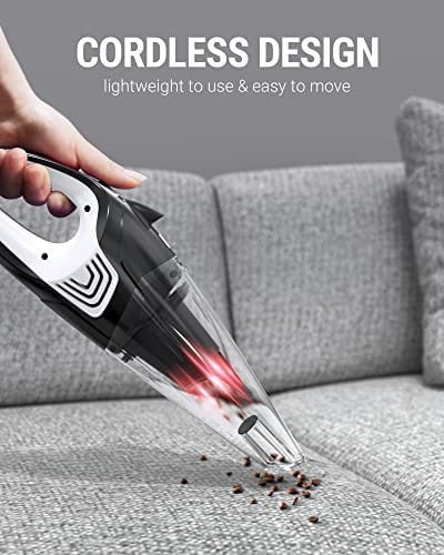 【Durable in Use】- The handheld hoover cordless is equiped with HEPA filters and innovative wraps, which are washable and more durable; the detachable dust cup is good for quick and easy trash dumping, convenient for the next cleaning work.