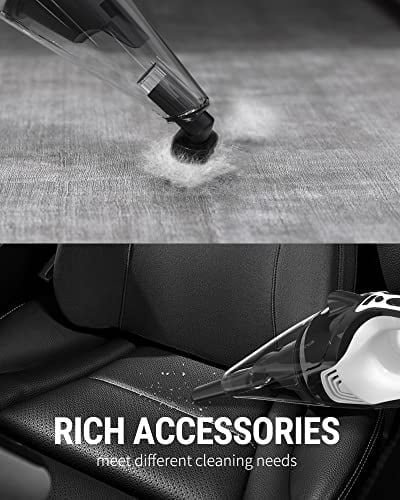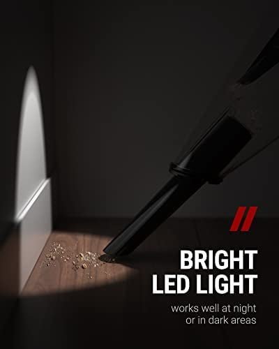【Lightweight & Deep Cleaning without Blind Corner】- The car vacuum cleaner high power cordless, equipped with 2 different nozzles to meet all your car cleaning needs. The couch vacuum is portable to use, and can reach some hard-to-reach areas such as sofa gap and inside of your car, and the super bright LED light ensures your cleaning work both in brightness and darkness.